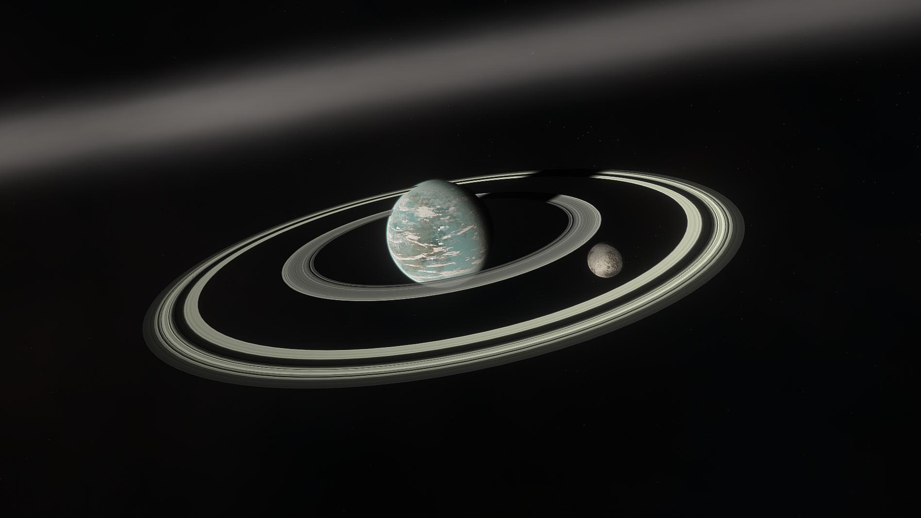 - Dorau - The mystical Dorau lurks amongst the dark clouds of the outer Debdeb system. This ice giant has lots of methane in its atmosphere, turning it sea blue. Supersonic wind speeds create the drama here, with large storms around the equator, seeded by impact events after the capturing of Bis sent its former moons into chaos. If you have a good eye, you might spot its faint rings.