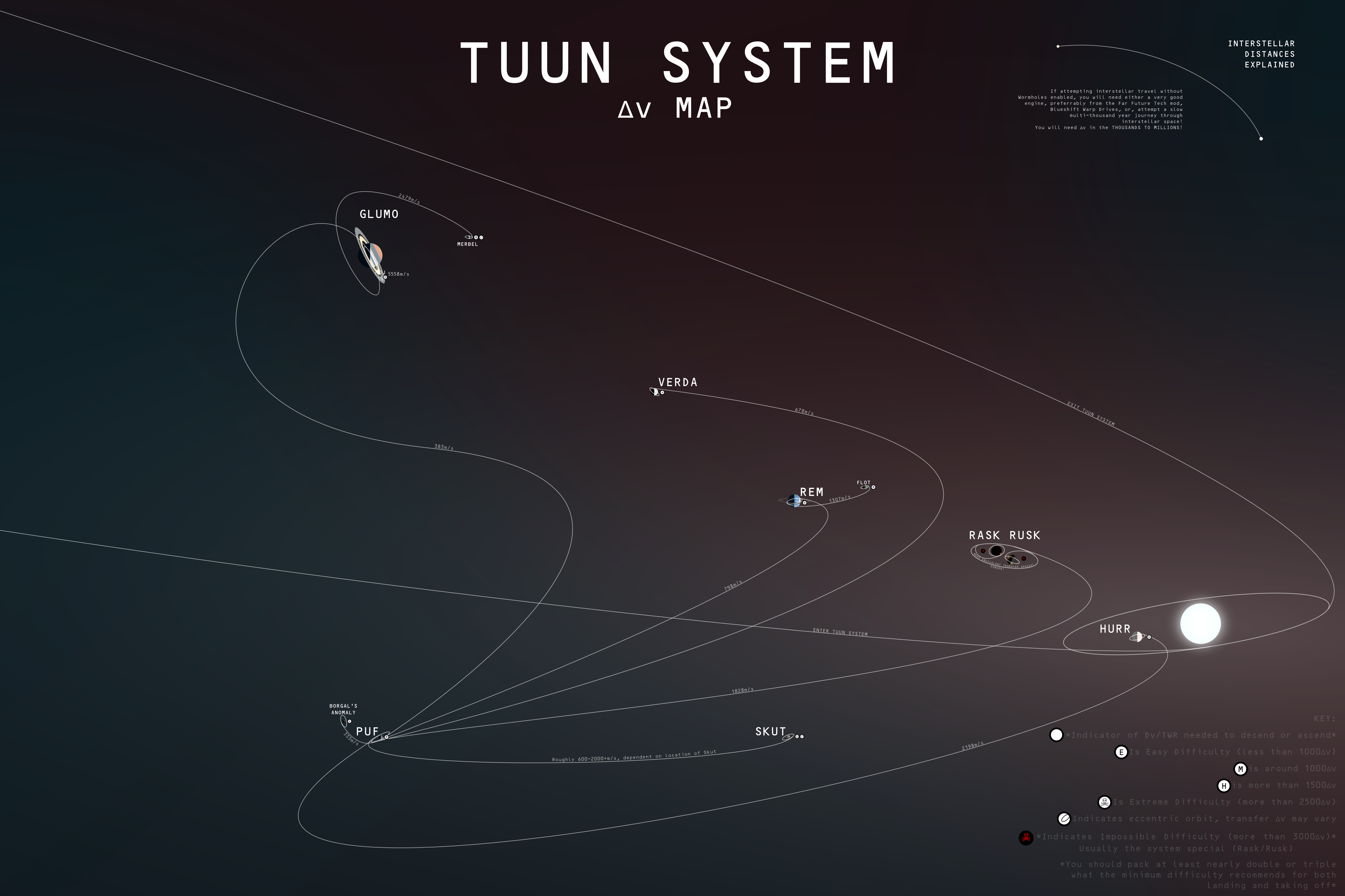 Dense and alien, the Tuun System is a prime destination for daring explorers. Eleven exotic worlds are anchored around a massive, F-Class star. Brave the barycenter of Rask and Rusk, navigate the depths of Puf's superocean, and dive into Verda's cloud deck in this ultimate interstellar adventure.