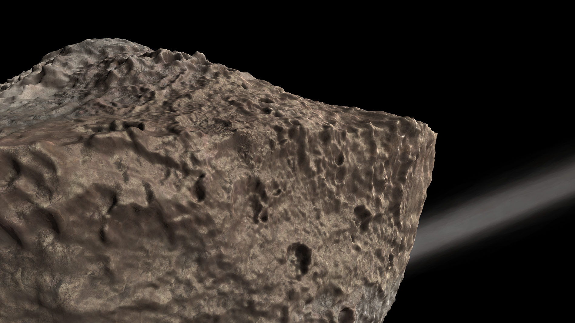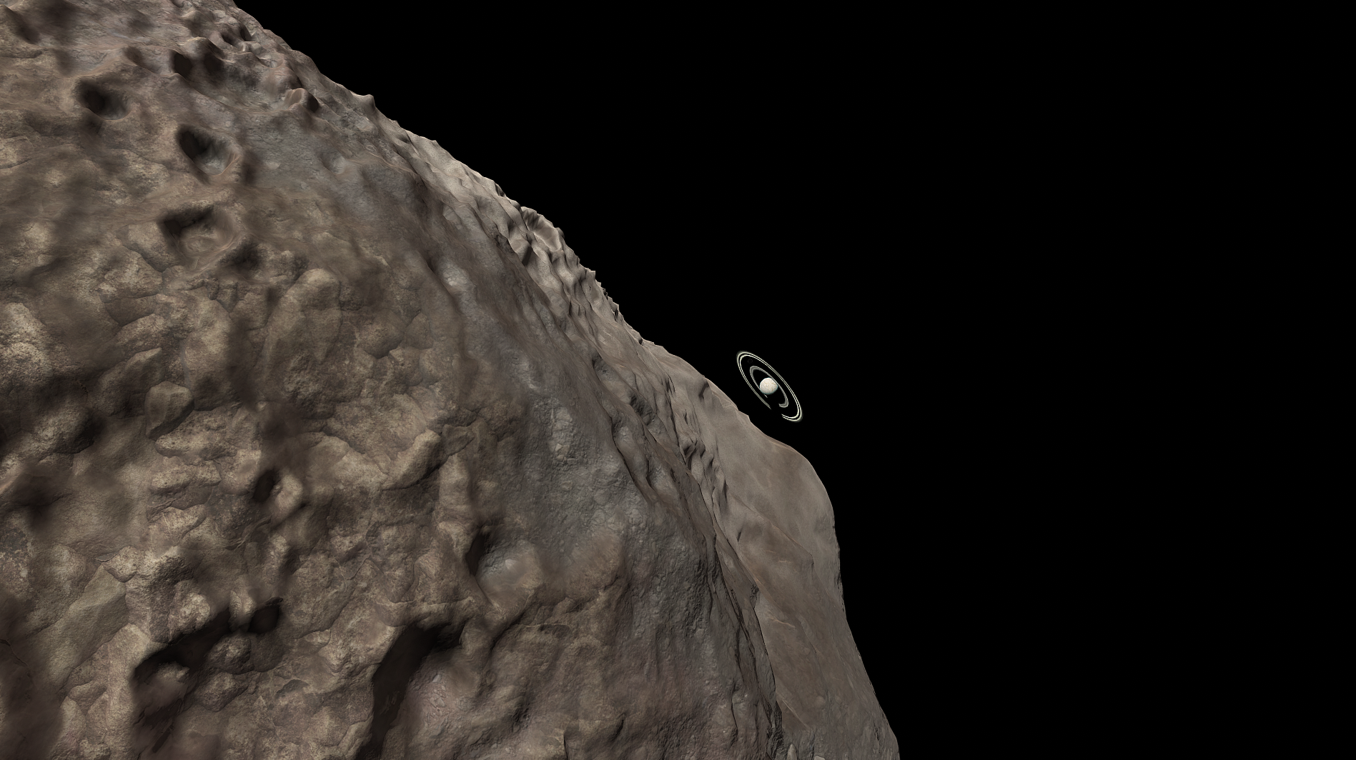 This little nugget was flung into a far elliptical orbit, likely after the recent collision that formed Donk. It spins very fast which has flattened it into a disk shape. Landing around the equator is extremely difficult thanks to this spin.