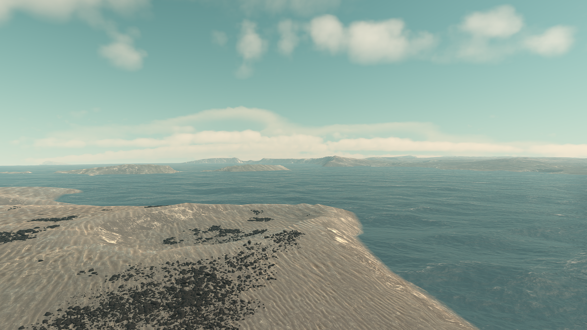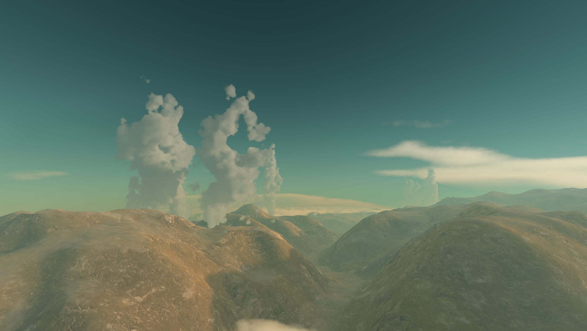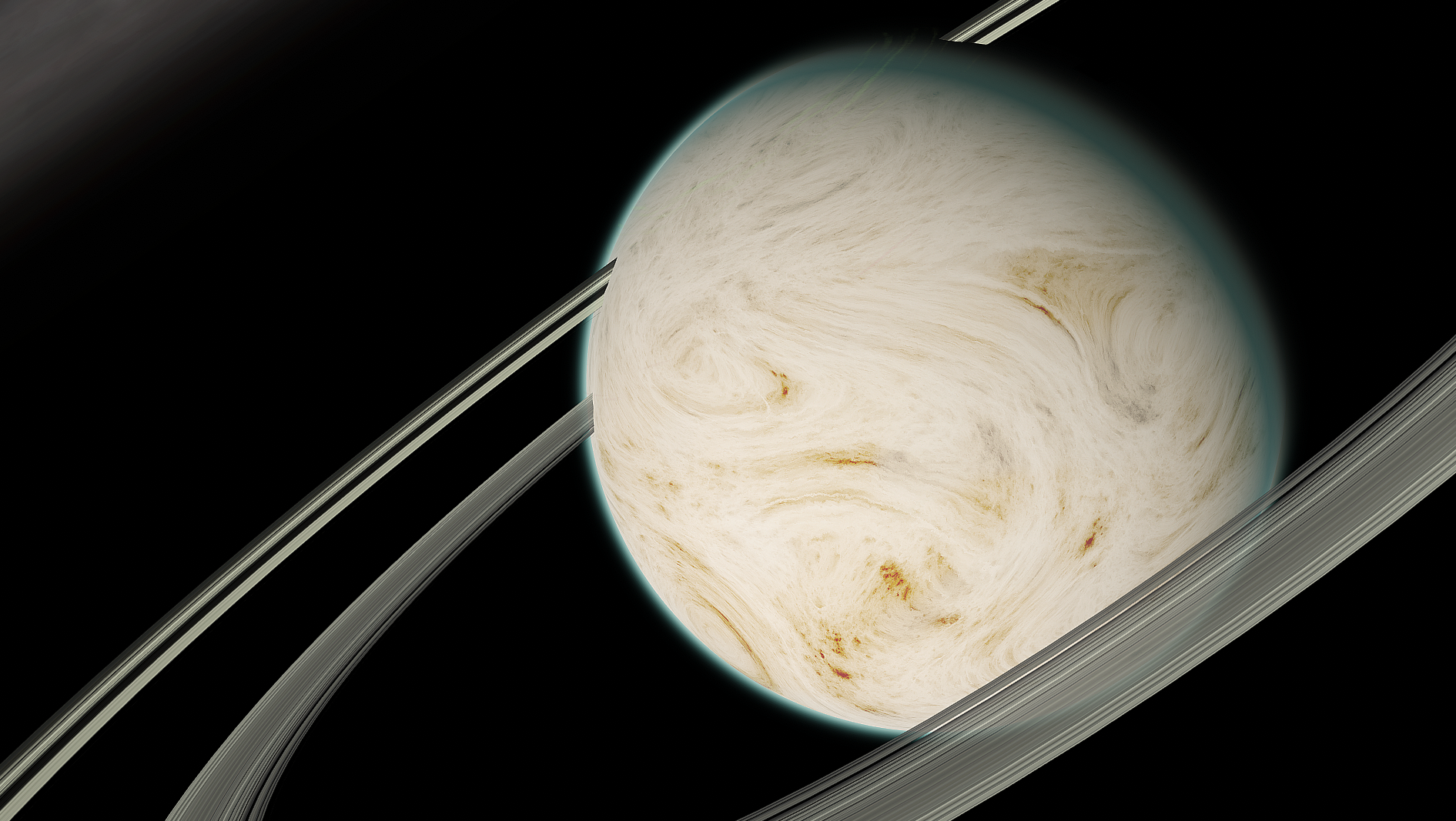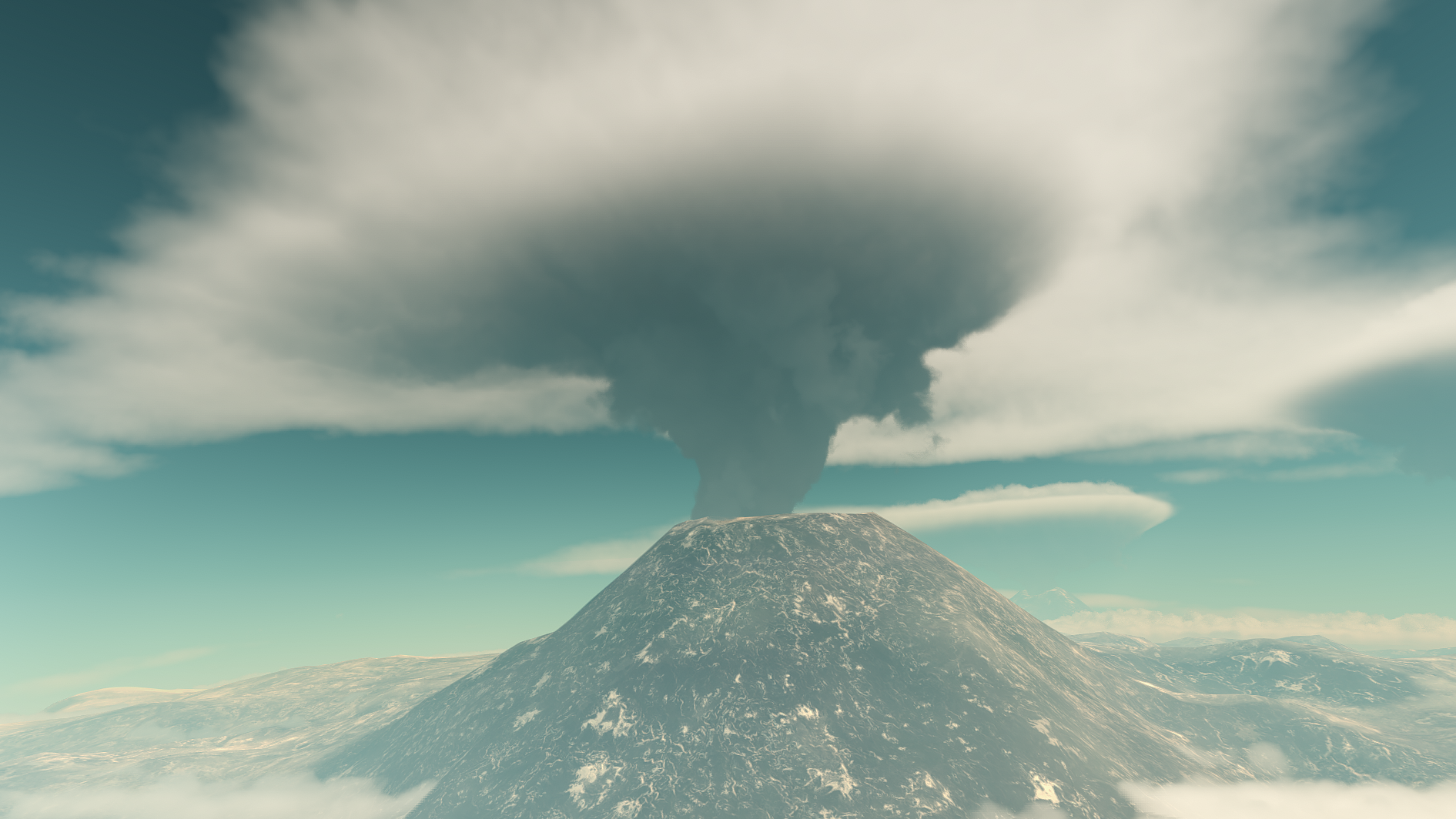 A look at Gurdammas volcanoes, along with it's surface, and surrounding clouds.